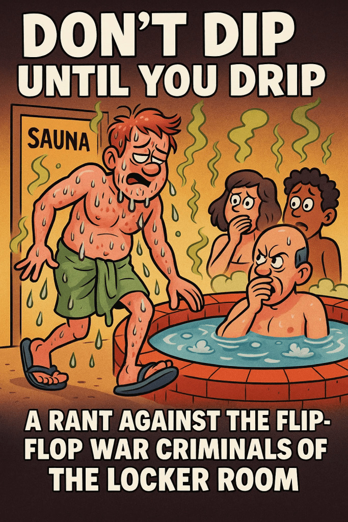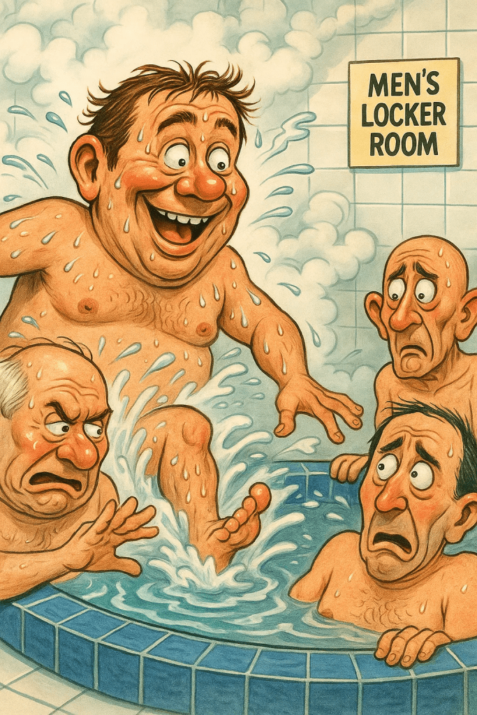 But some of you, and you know exactly who you are, have decided this sacred rule doesn’t apply to you. You just waltz out of the sauna like a buttered-up rotisserie chicken, covered in a personal glaze of ass sweat and back hair oil, and cannonball straight into the hot tub. No rinse. No pause. No shame. No common courtesy.