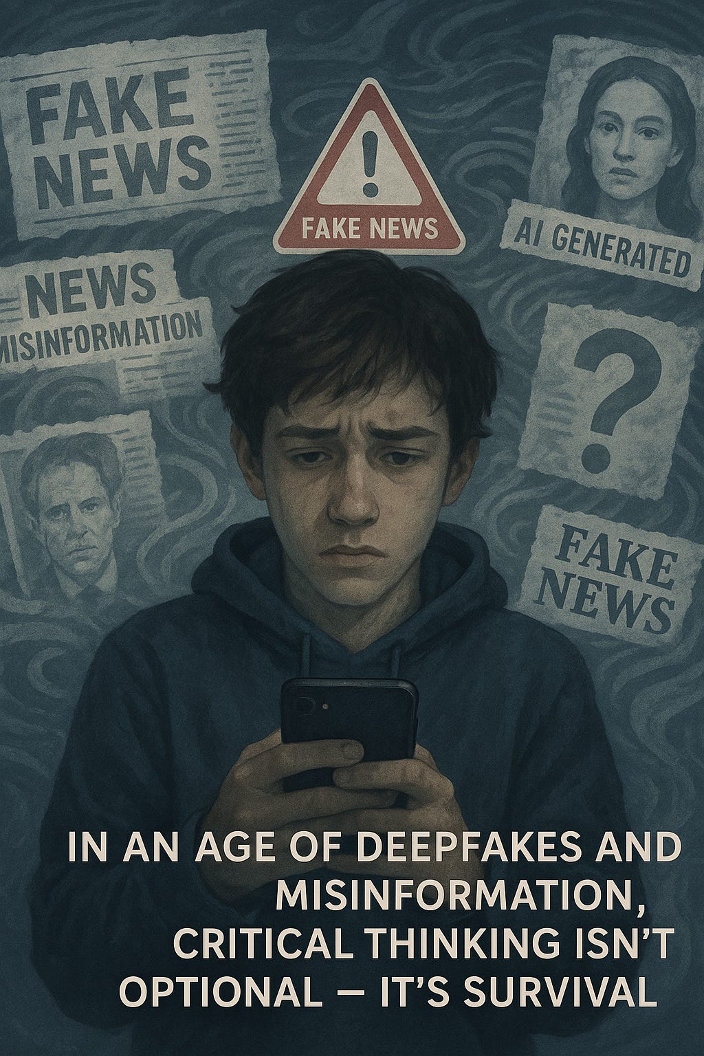 The information war: In an age of deepfakes, misinformation, and AI-generated content, critical thinking isn’t optional, it’s survival. And we’re sending kids into this world unable to evaluate whether what they’re seeing is real.