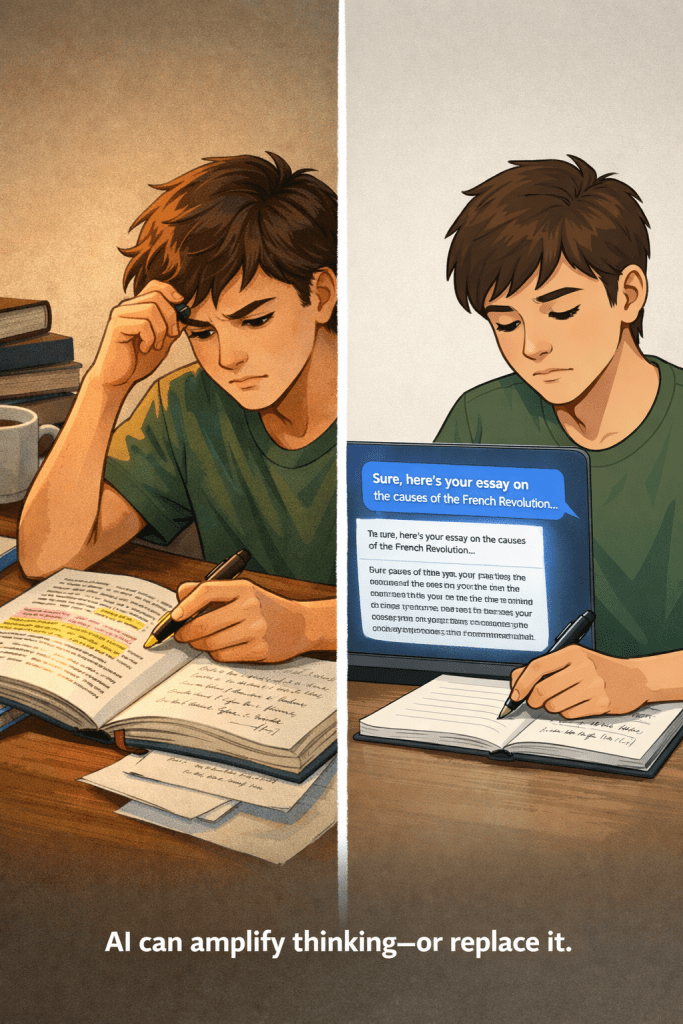 The best and latest AI tools can’t help our kids here. The economic class system and dividing line will be drawn by those who can think clearly and who cannot. And right now, we’re raising a generation that’s struggling with both.